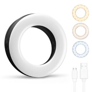Anillo de luz LED portátil, perfecto para tomar selfies en condiciones de oscuridad o para corregir la luz de ambiente. Incluye función de graduación de intensidad de brillo y tres variantes de luz: Fría, cálida y natural. También se puede utilizar en cámaras de computadoras portátiles o como foco para maquillaje.