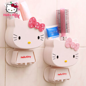 Base de colección Hello Kitty con sistema instala fácil, con soporte para 4 cepillos dentales y compartimento para pastas dentales y utensilios.