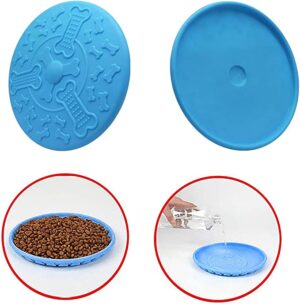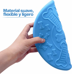 Disco volador para mascotas hecho de plástico rígido flexible y fácil de transportar. Función de vuelo y flotante para mayor diversión. Puede contener alimento o agua en la parte posterior. Diseño llamativo y estimulante para tu mascota.