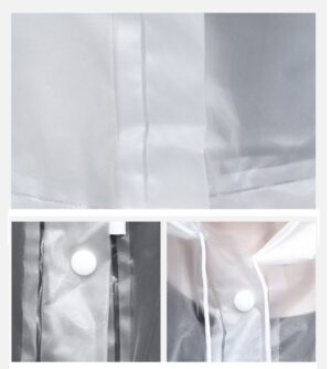 Moderno impermeable unisex hecho de material de fibra 100% a prueba de agua. Su diseño elegante te permitirá vestirlo como una gabardina, cuenta con una tira de doble resistencia con botones, un gorro y puños elásticos para ajustarse al tamaño de la muñeca. 100% lavable y resistente, puede usarse con prendas grandes como abrigos o accesorios como mochilas.