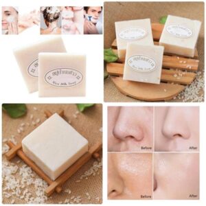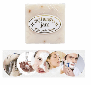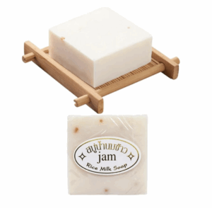 Jabón de leche de arroz con Vitamina D, colágeno y extractos de arroz natural sin conservantes. Ideal para todo tipo de pieles. Acción aclarante que recupera el tono original de la piel, reduce manchas provocadas por exposición solar, favorece a cerrar los poros y aporta brillo, hidratación y suavidad al rostro.