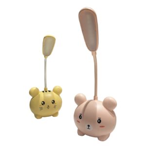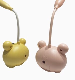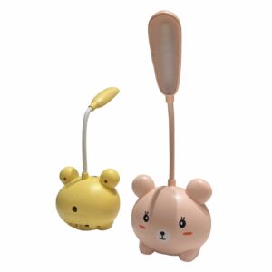 Lámpara animada con luz LED fría, ideal para estudiar y leer. Incluye un sacapuntas en la parte frontal y un cable de conexión USB a corriente para cargar.