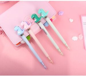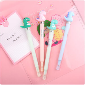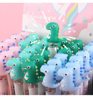 Divertida pluma de gel con tinta negra, punto fino y forma de dinosaurio. Cuenta con luz LED de distintos colores que alterna de forma automática.