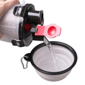 Recipiente ideal para llevar a tu perro fuera de casa, cuenta con tapas a prueba de fugas y dos ganchos para colgar platos. Su material de alta calidad mantendrá el agua fresca y protegerá el alimento del aire libre.